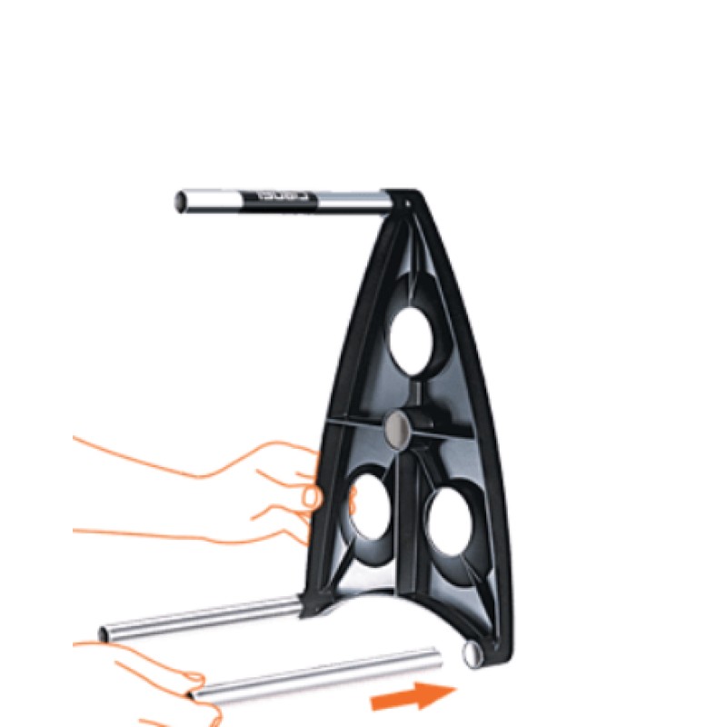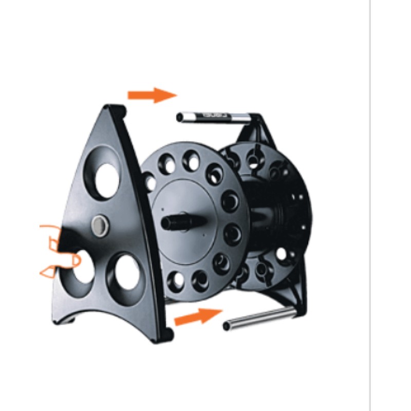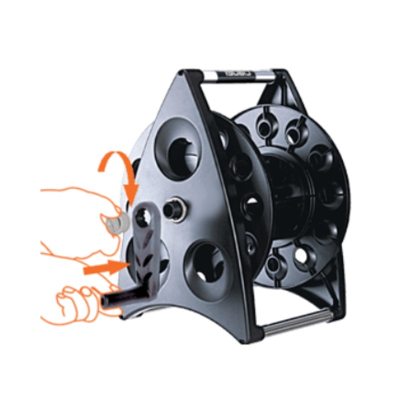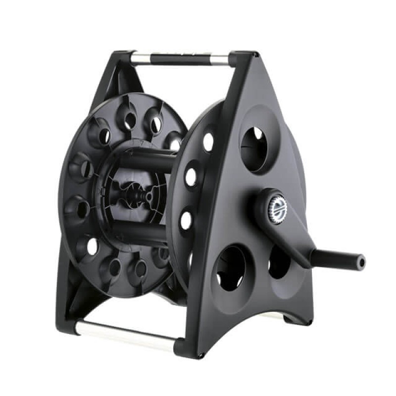 Šiuolaikiškas ir kompaktiškos žarnos ritės dizainas bei modernus praktiškumas, kurią galima pakabinti ant sienos su specialiais laikikliais arba gabenti kur tik norite, stabiliai pastatant ant žemės. Siūlomas mažame, lengvai gabenamame dėkle, jis greitai surenkamas be įrankių ir talpina 40 metrų 1/2" žarnos arba 35 metrus 5/8" žarnos.
